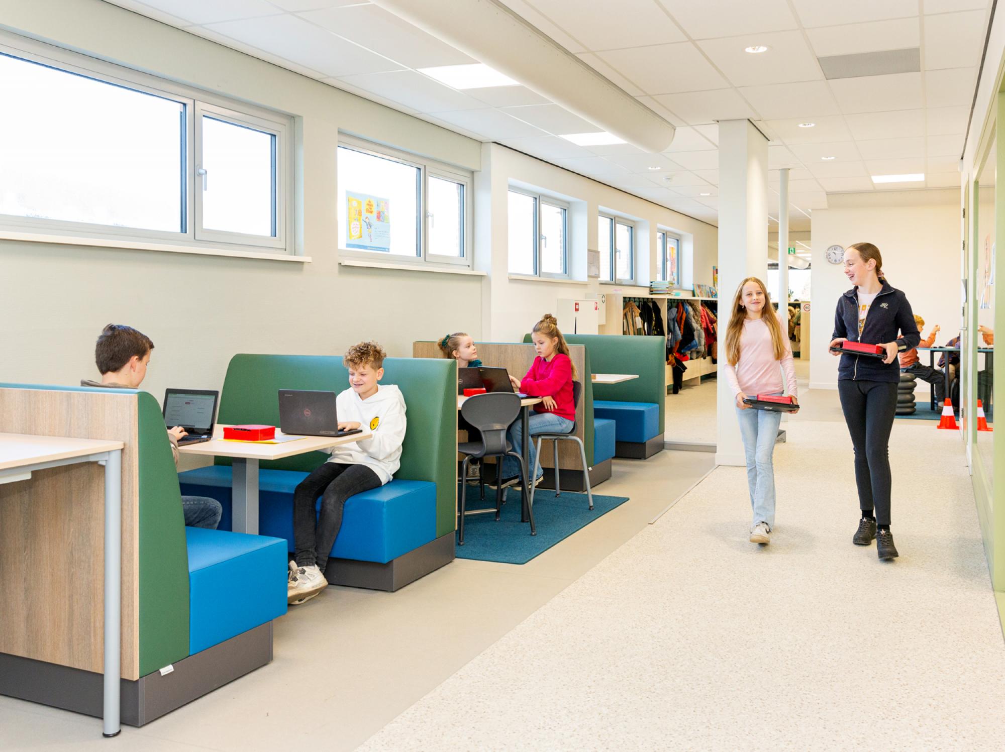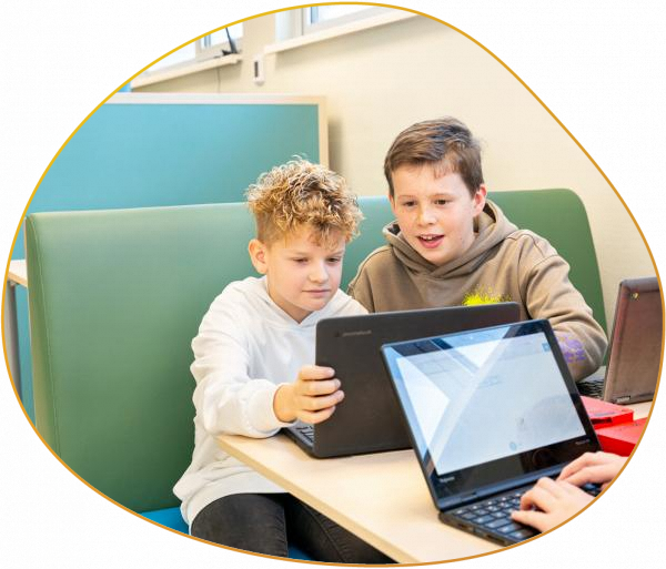 Onze kinderen werken, spelen en leren samen met de meesters en juffen en met elkaar. We kijken telkens hoe ieder kind een stapje verder kan komen in het eigen leertraject.