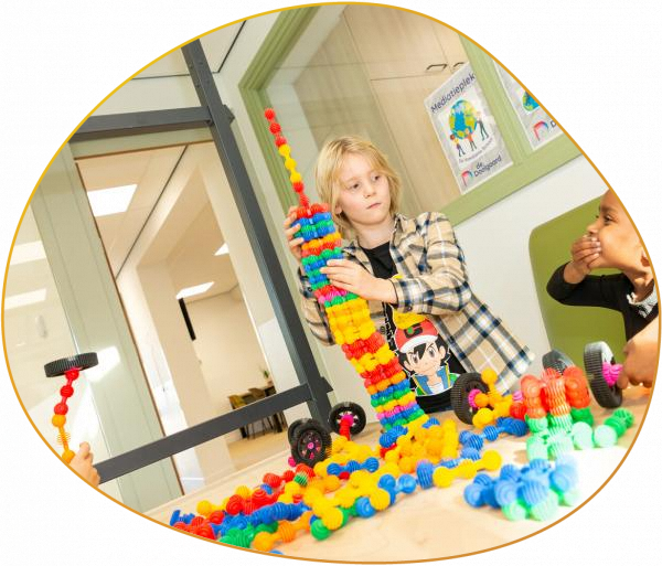 Bij ontdekkend leren hoort ook erop uit trekken. We blijven niet hele dagen binnen zitten, maar besteden ook aandacht aan activiteiten buiten, beweging en gezonde voeding.
